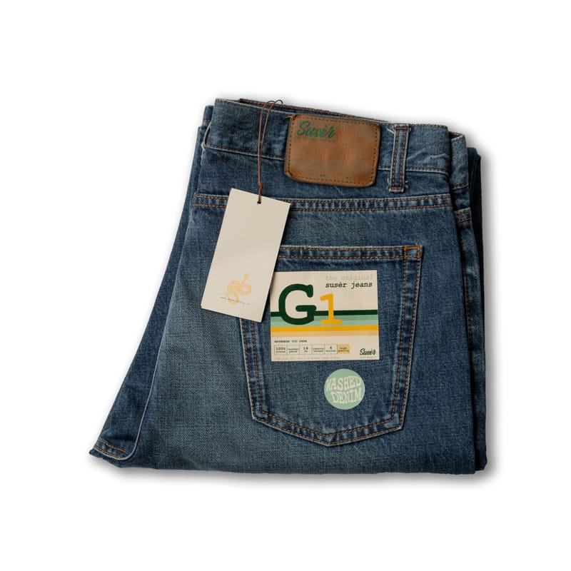 Questo è un denim Susér, è un cimosato che viaggia nella storia, totalmente fatto in Italia grazie a tradizionali lavorazioni fatte con Singer e Union Special. 5 tasche, non sanforizzato, in continuo adattamento alla forma della tua gamba. ANYWHERE YOU DARE.